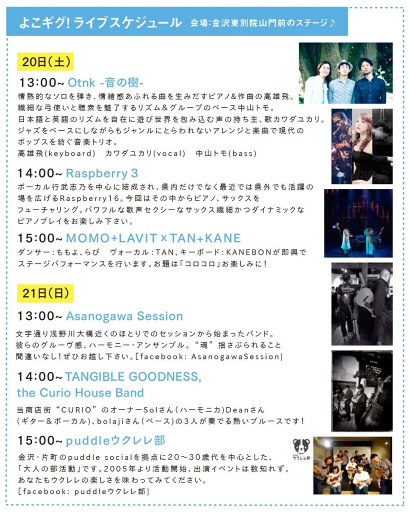 2017-05-17 Live information 20th May 2017 at 金沢横安江町 よこっちょポッケマート as Otnk -音の樹- 2017/5/20(土) 13:00〜 入場無料!!! よこっちょポッケまーと 金沢市横安江町 東別院山門前ステージ Otnk のライブがございます。 足を運んで下されば幸いです。 詳細サイト